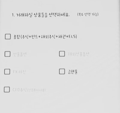 거래하실 상품을 선택하는 화면이 나오면 종합(주식+펀드+해외주식)을 선택해 줍니다. 금현물과 FX마진에 대하여는 추후에 포스팅하도록 하겠습니다.